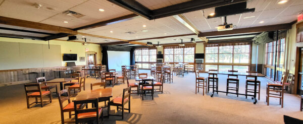 Offering picturesque views of the beautiful golf course with access to Mully’s Patio, the Simulator Room can comfortably accommodate up to 128 guests. (Not available in winter.)